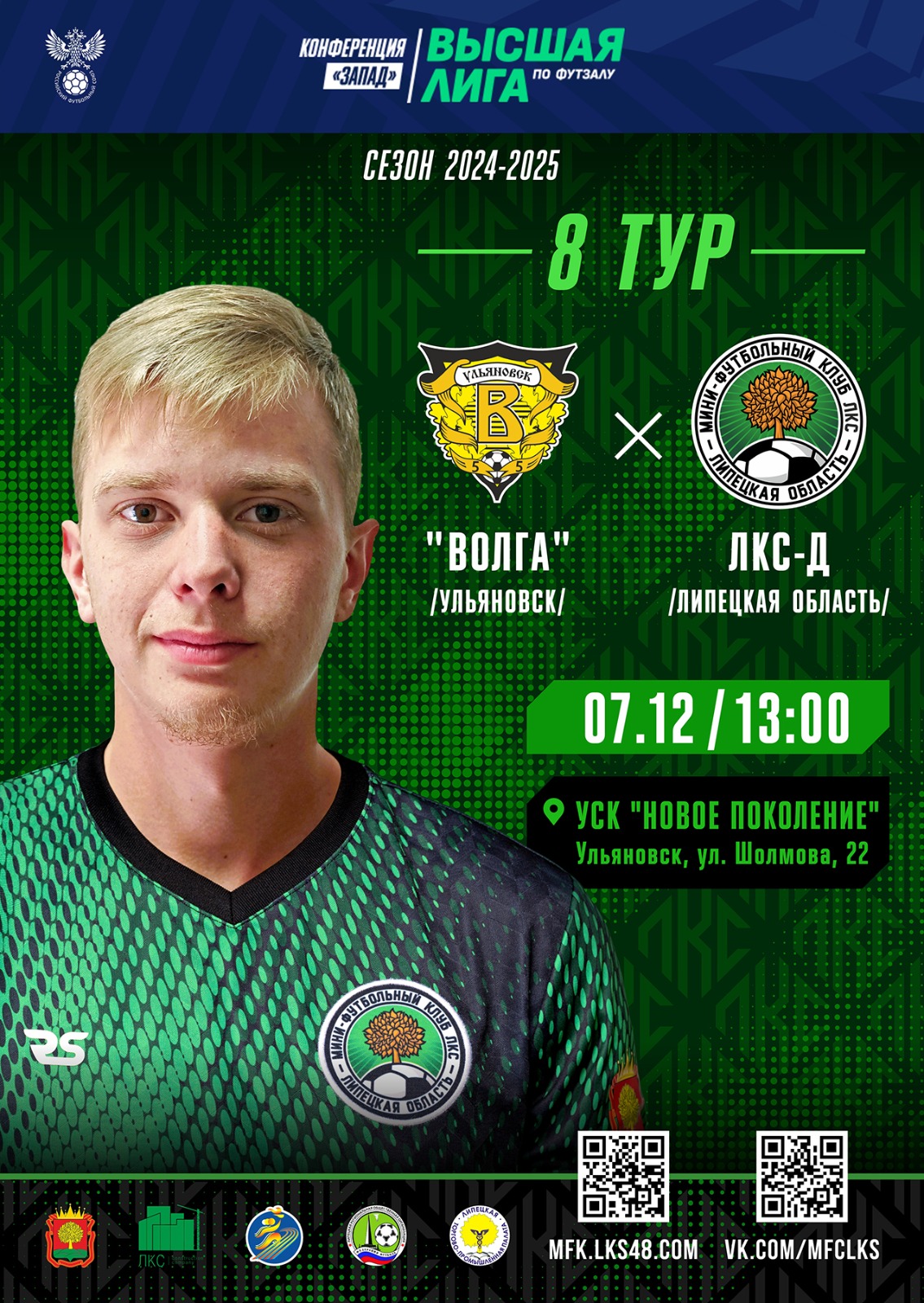 На этой неделе дублирующий состав мини-футбольного клуба ЛКС в 8-м туре Высшей лиги Первенства России по футзалу 2024/25 встретится с МФК "Волга" (Ульяновск). Игра состоится в субботу, 7 декабря, в УСК "Новое поколение" (Ульяновск, ул. Шолмова, 22). Начало – в 13:00. Пожелаем нашим парням удачи!