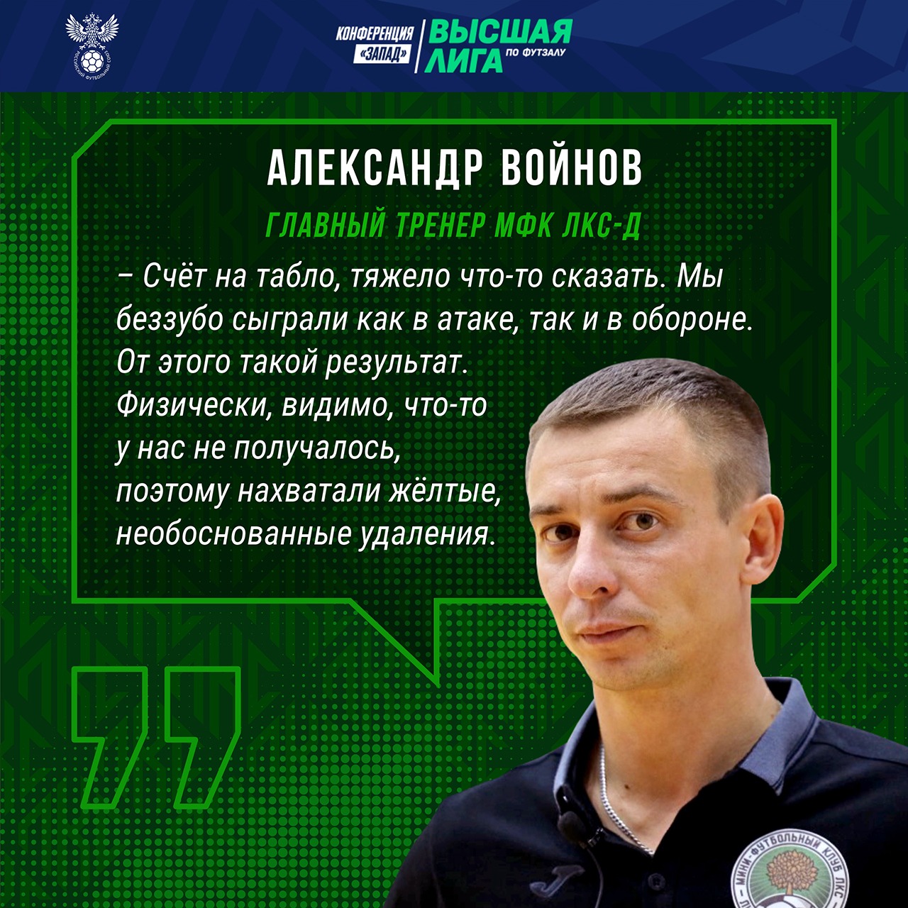 Главный тренер МФК ЛКС-д Александр Войнов прокомментировал итог матча: