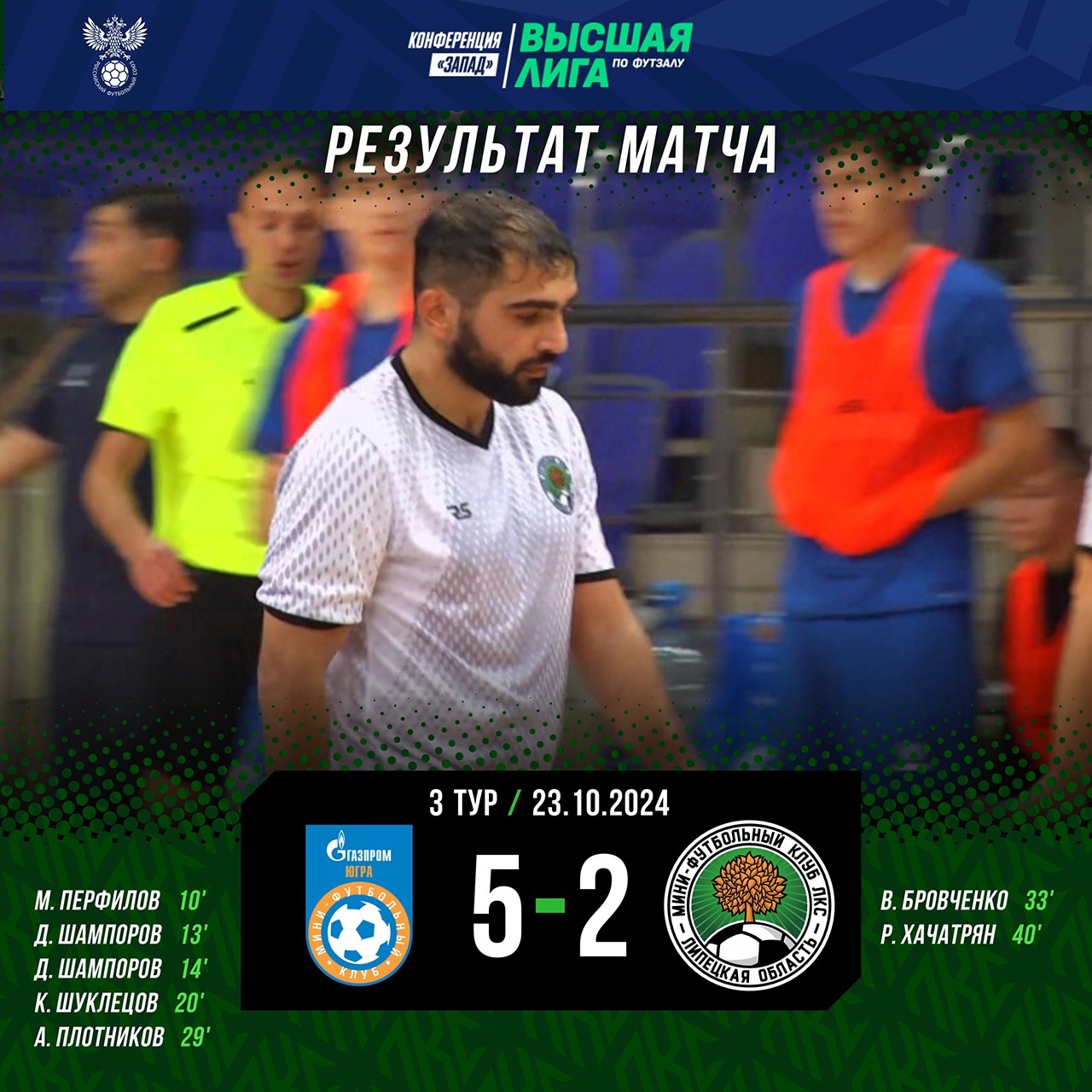 МФК "Газпром-Югра-д" (Югорск) – МФК ЛКС-д (Липецкая область) – 5:2 (4:0).