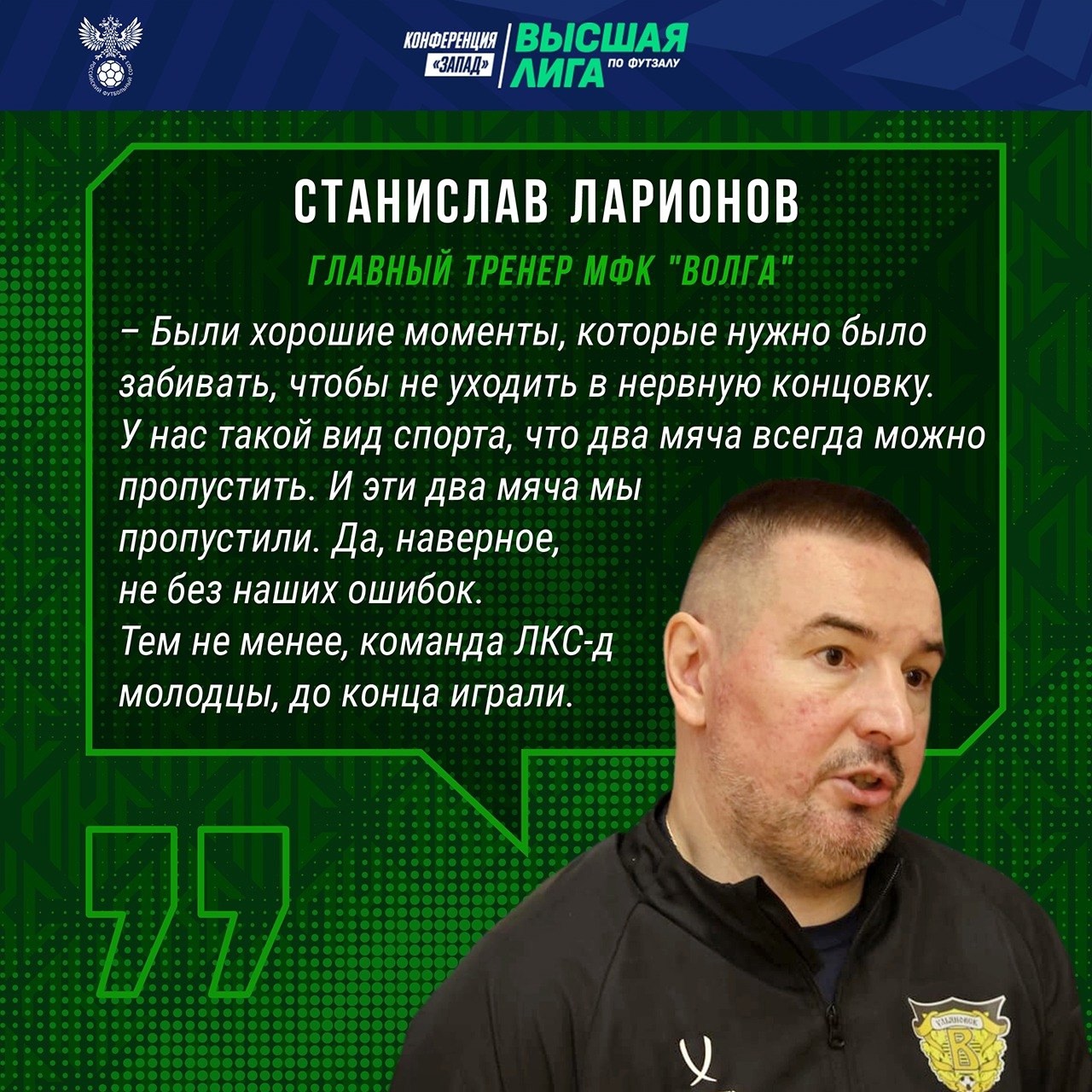 Главный тренер МФК "Волга" Станислав Ларионов: