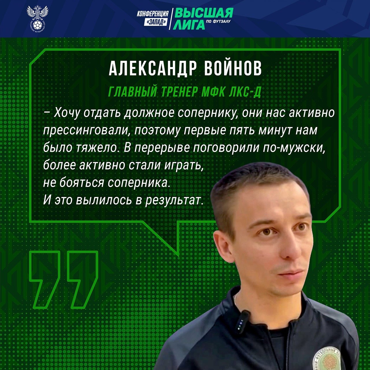 Главный тренер МФК ЛКС-д Александр Войнов: