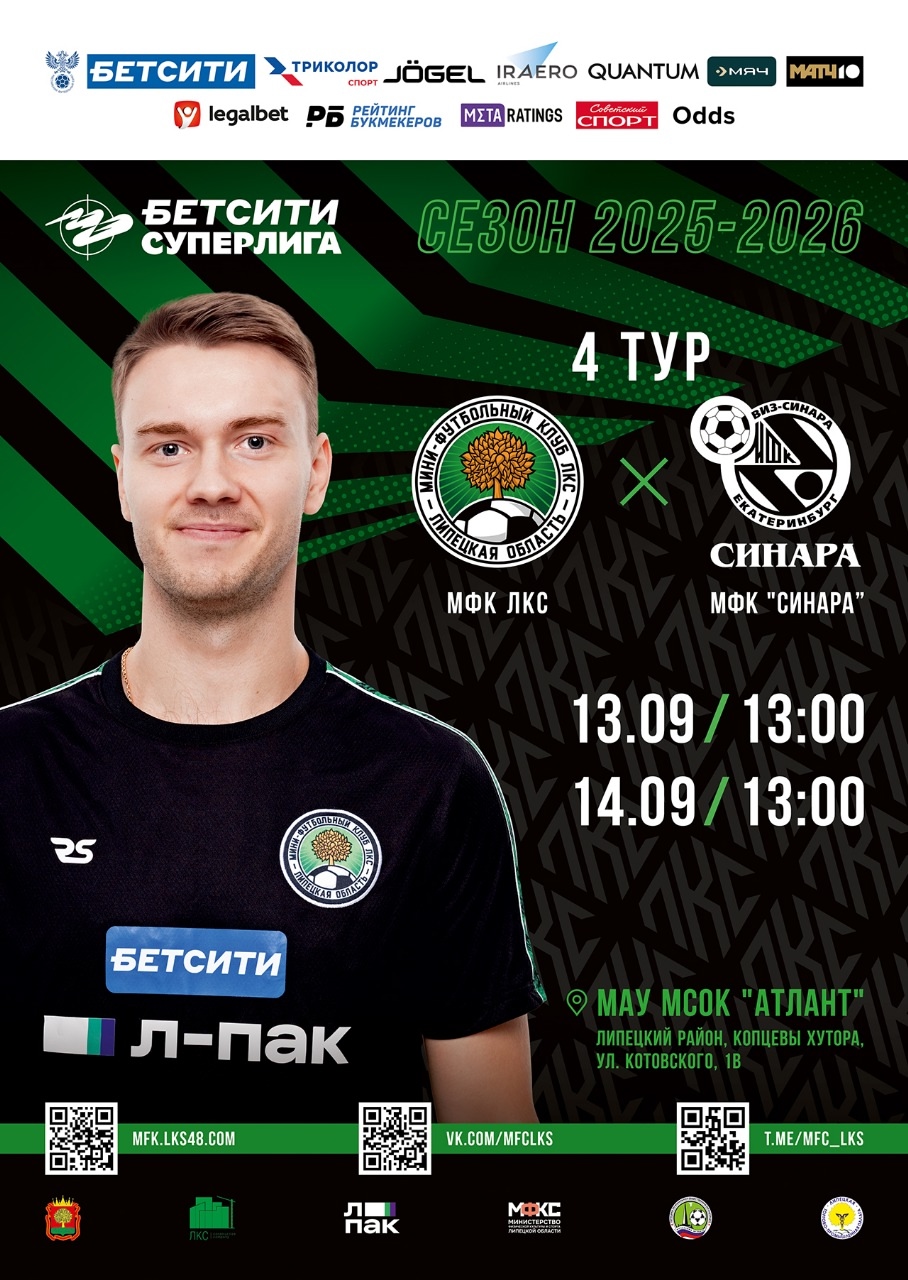 4 тур БЕТСИТИ - Суперлиги по футзалу ЛКС проведёт дома. На паркете «Атланта» липчане сразятся с командой из Екатеринбурга. Начало матчей в 13:00.