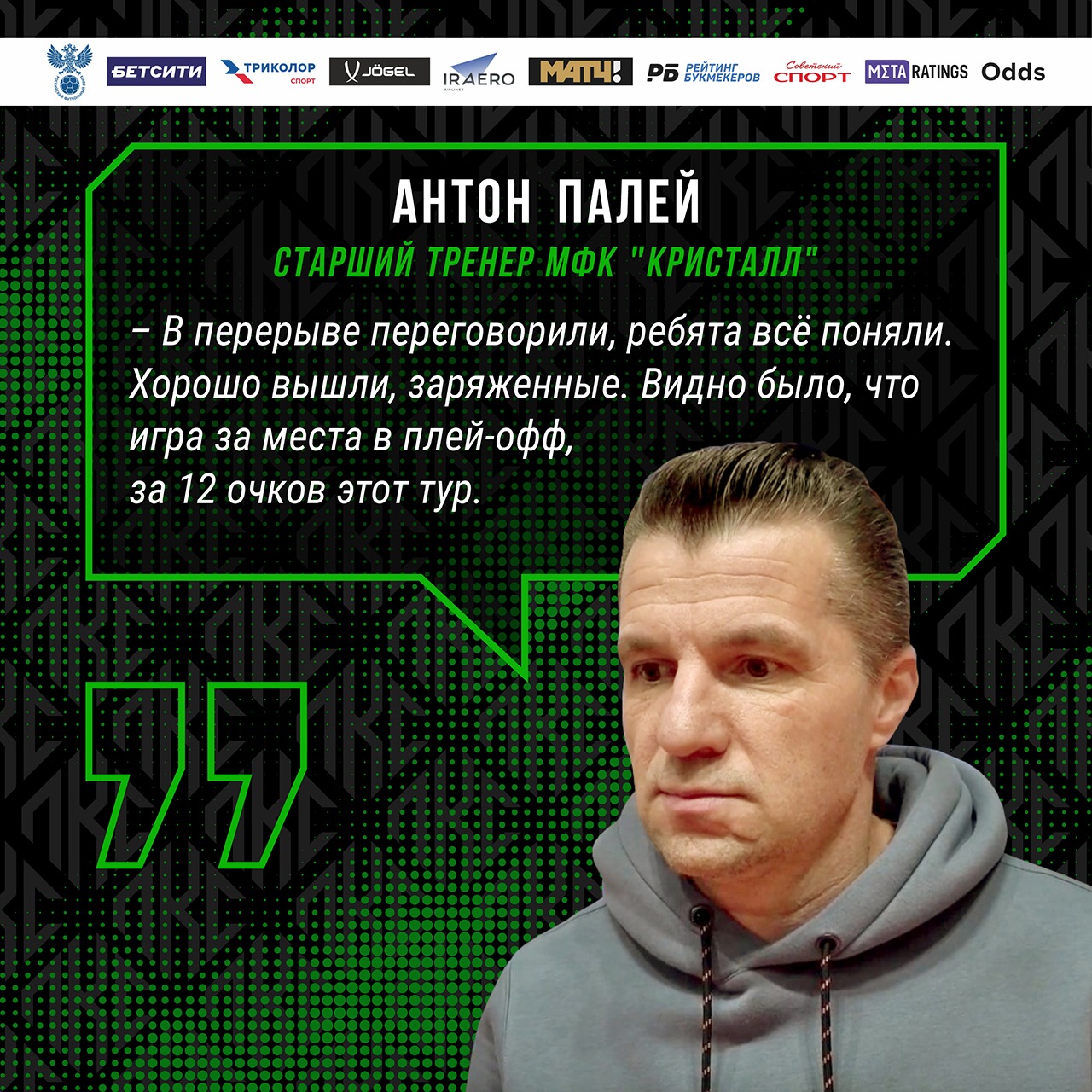 – Настроение хорошее, игра получилась довольно качественная. Из многих факторов, конечно, сложилась победа, но я три выделю. Это качественная и самоотверженная игра в обороне наших ребят в сложных моментах, когда при счёте 2:1 было тяжело. Также отмечу наших болельщиков, которые, наверное, почувствовали, что качели могут качнутся не в ту сторону, и включились, поддержали. Ребята этот задор почувствовали, этот импульс, включились, забили гол. Ну и третий фактор, что подготовились, разобрали соперника. Обидно, что в первом тайме, имея такое преимущество и два десятиметровых, ушли на перерыв при счёте 2:1. Но ничего, в перерыве переговорили, ребята всё поняли. Хорошо вышли, заряженные. Видно было, что игра за места в плей-офф, за 12 очков этот тур. Поэтому ребятам спасибо, болельщикам спасибо. Но завтра ещё игра, а вторые игры всегда сложнее.