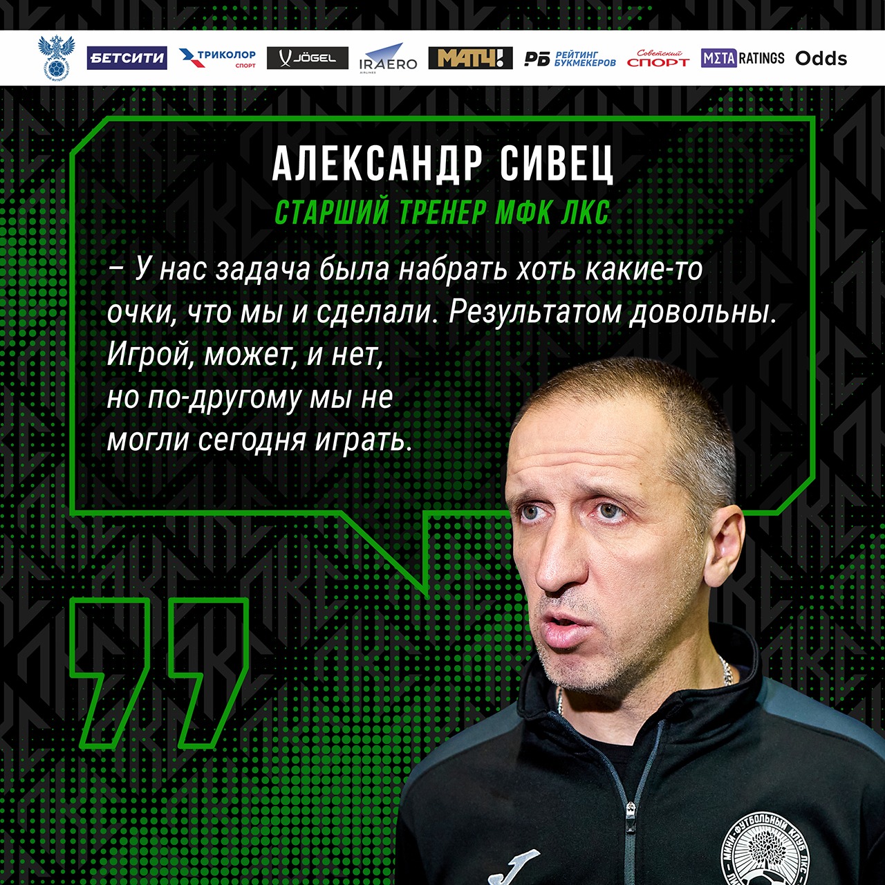 – Действительно, моментов было немного, но мы сегодня посмотрели по количеству человек, вы видели, у нас сегодня был ограниченный состав, другого варианта, как сыграть в такой футбол, не было. У нас задача была набрать хоть какие-то очки, что мы и сделали. Результатом довольны. Игрой, может, и нет, но по-другому мы не могли сегодня играть.