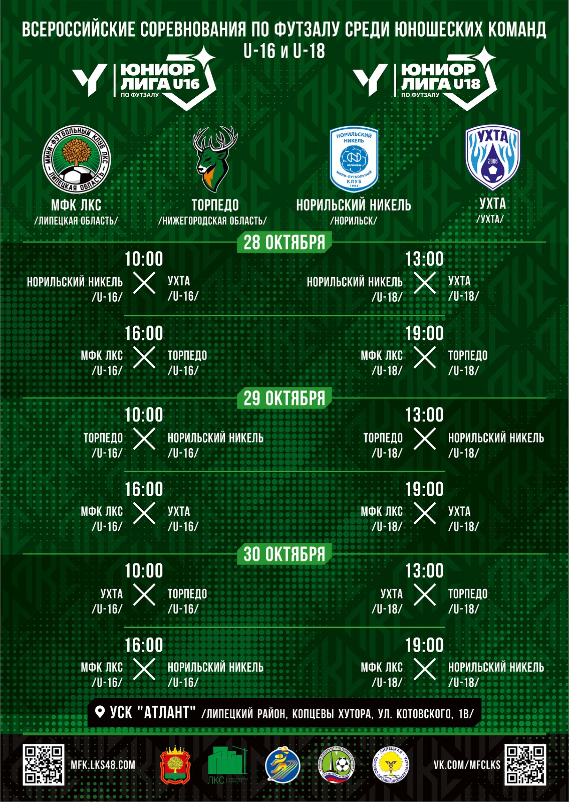 На следующей неделе команды ЛКС U-16 и U-18 проведут матчи 2-го тура Всероссийских соревнований по футзалу среди юношей 2007-2008 и 2009-2010 г.р. («Юниорлига») сезона 2024/25. Во втором туре соперниками липчан станут юношеские команды "Торпедо", "Ухты" и "Норильского никеля". Игры пройдут 28-30 октября в УСК "Атлант" (Липецкий район, Копцевы хутора, ул. Котовского, 1в). Пожелаем нашим парням удачи!
