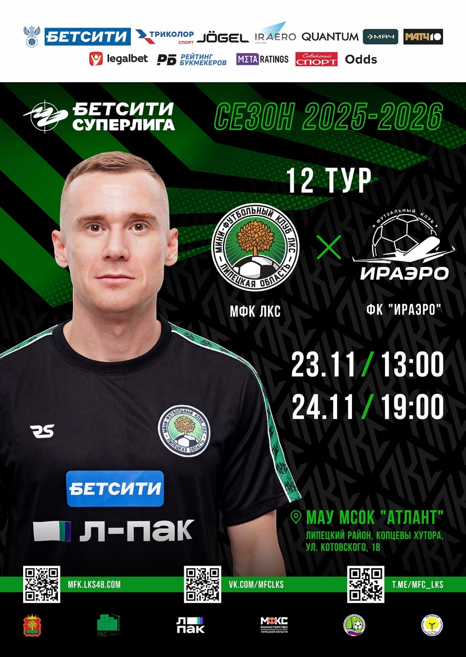 В 12-м туре БЕТСИТИ Суперлиги по футзалу ЛКС сыграет с иркутским "ИрАэро"